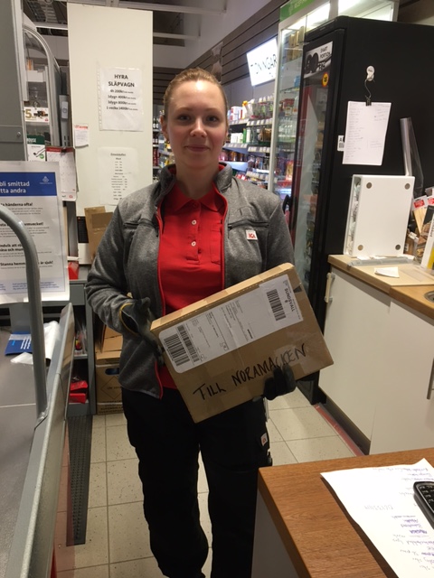 Det fungerar ganska bra med den ökade postservicen här på butiken säger Sanna Rönnberg. Det är toppen att både kunna skicka paket och hämta här hos oss! Foto: Kristina E. Sundbaum.
