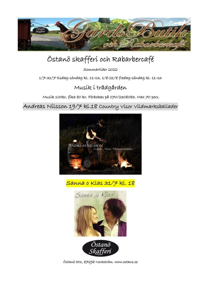 Östanö Skafferi och Rabarbercafé – musik i trädgården 19/7 och 31/7 Dela det här: Klicka för att dela på X (Öppnas i ett nytt fönster) X Klicka för att dela på Facebook (Öppnas i ett nytt fönster) Facebook Gilla Laddar in …
