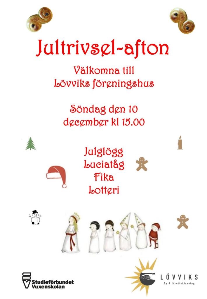 JULTRIVSELAFTON Söndag den 10 december klockan 15.00 på Lövviks föreningshus Dela det här: Klicka för att dela på X (Öppnas i ett nytt fönster) X Klicka för att dela på Facebook (Öppnas i ett nytt fönster) Facebook Gilla Laddar in …