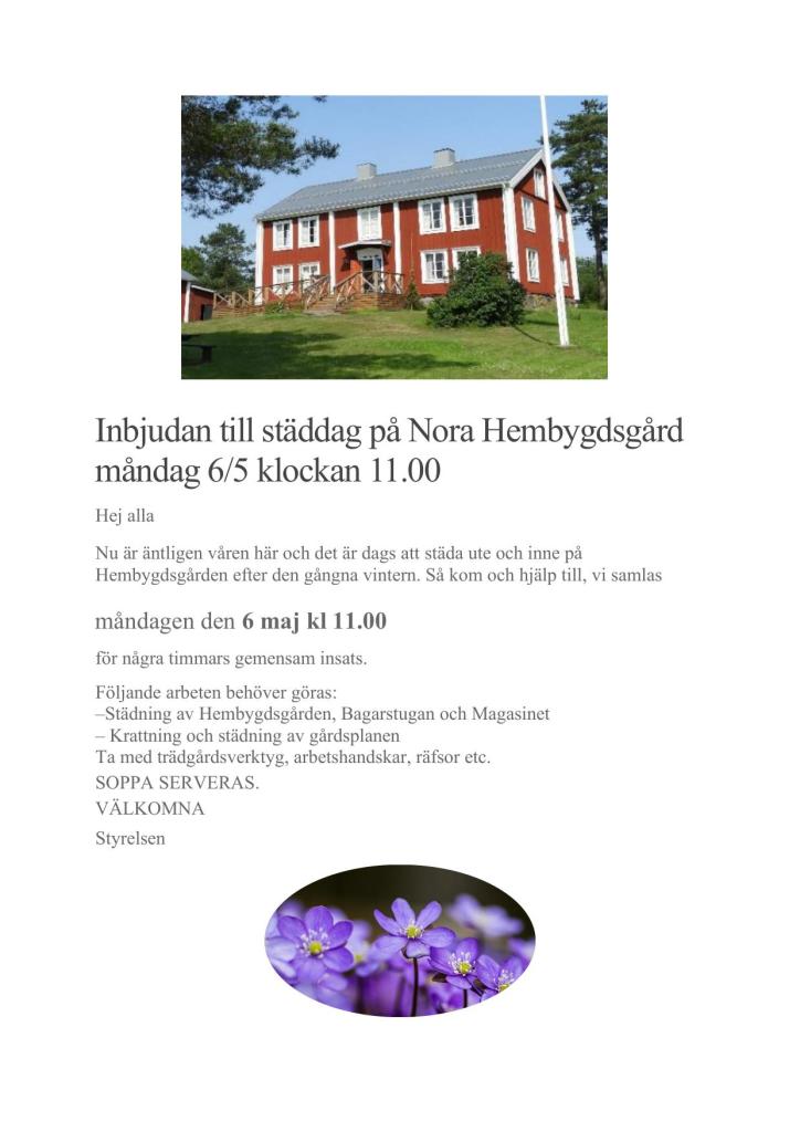 Städdag på Hembygdsgården På måndag den 6 maj är det städdag på Nora Hembygdsgård. Kom med du också! Och ta med en kompis. Dela det här: Klicka för att dela på X (Öppnas i ett nytt fönster) X Klicka för att dela på Facebook (Öppnas i ett nytt fönster) Facebook Gilla Laddar in …