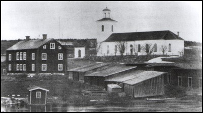 Föregående bild Nästa bild kyrkan_ga2 Första skolan i Torrom,,som revs 1899, samt kyrkstallarna. Skolbyggnaden, nuvarande församlingshemmet, byggdes år 1900.