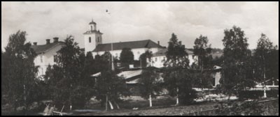 Här skymtar nya skolan samt kyrkstallarna.