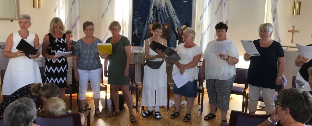 I söndags sjöngs det som sagt, under ledning då som nu under Siv Lindström, samt berättades historien kring det hela av Gerd Norberg (Margaretas mor), några sketcher från ’Burkmat’ återgavs med liv o lust under stor munterhet.